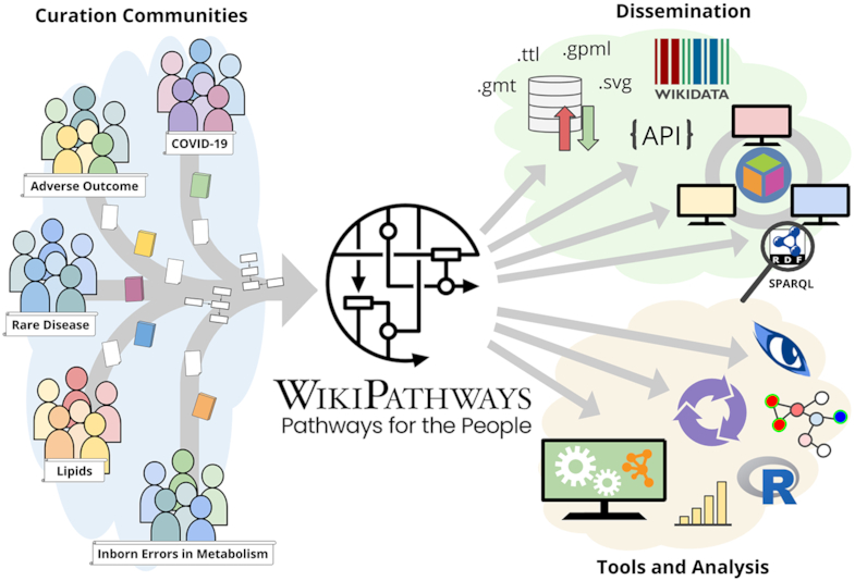 WikiPathways was established to facilitate the contribution and maintenance of pathway information by the biology community. WikiPathways is an open, collaborative platform dedicated to the curation of biological pathways. WikiPathways thus presents a new model for pathway databases that enhances and complements ongoing efforts, such as KEGG, Reactome and Pathway Commons. The familiar web-based format of WikiPathways greatly reduces the barrier to participate in pathway modeling. More importantly, the open, public approach of WikiPathways allows for broader participation by the entire community, ranging from students to senior experts in each field. This approach also shifts the bulk of peer review, editorial review, and maintenance to the community.